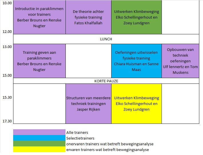 Steeds meer mensen met een beperking ontdekken paraklimmen als parasport. Een rolstoel of een prothese in een klim- of boulderhal is iets wat steeds gewoner wordt. Om trainers handvatten te geven om ook deze klimmers goed te kunnen begeleiden hebben we twee workshops over dit onderwerp in het programma opgenomen.