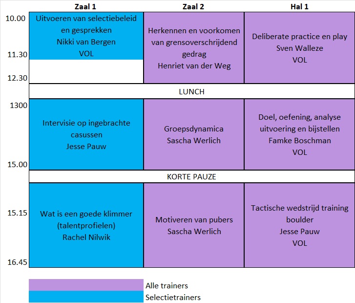 - Workshops die voor alle trainers toegankelijk zijn (paars)