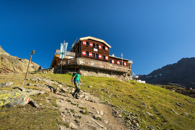 In de Ötztaler Alpen in Oostenrijk stop je voor een hapje en een drankje bij de Vernagthütte, gelegen op 2755 meter hoogte. Deze hut ligt op de Ötztal Trek, een langeafstandsroute van 215 kilometer. Hierbij leg je in 22 etappes 17.000 hoogtemeters af. Alleen voor de echte doorzetters! Iets te hoog gegrepen? Het beklimmen van de toppen op de Weißkamm behoort ook tot de mogelijkheden. De Vernagthütte is zowel in de zomer als de winter geopend waardoor wandelen, klimmen, skiën en sneeuwschoenwandelen allemaal mogelijk is.