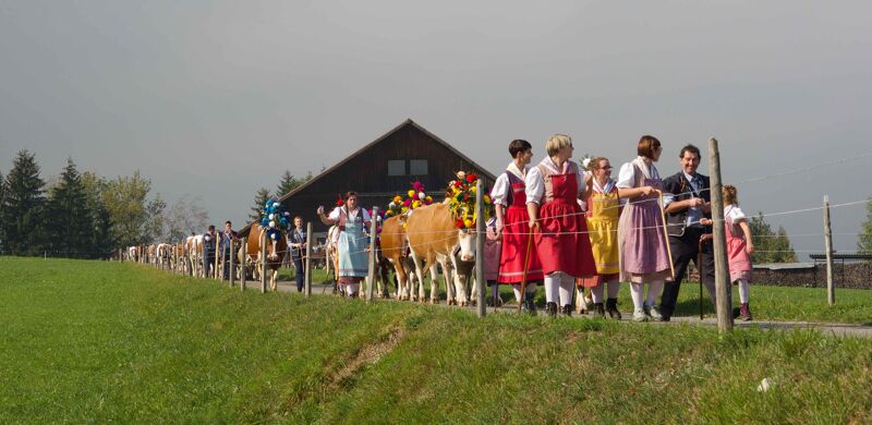 Iedereen is er klaar voor. Ook de jonge meisjes en jongens, allemaal kinderen van boeren met koeien die meelopen. De jongens zijn verkleed in de bredzon, de meisjes in dazquillon, fleurige klederdracht en de ouderen lopen in overall. Peter vertelt; “de koeien zijn onrustig, ze willen lopen”, merkt Peter op. En dan is daar het sein. Jacques Ruffieux loopt, samen met de meisjes en de jonge vrouwen, voorop. Verdeeld over de kudde lopen de jongens en de mannen. Het is groot feest, met schitterend weer”. De groep wordt op weg naar de stal door Charmey, toegejuicht en -geklapt.