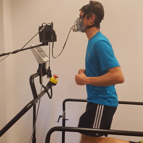 We zijn hiervoor naar het USC Universum in Amsterdam gegaan. Onze coach Bas Visscher is daar werkzaam en raadde ons aan hier een inspanningstest te doen. Bij deze test loop je op een loopband waarbij de snelheid van de band iedere minuut verhoogt wordt. De test is voorbij als je het tempo niet meer vol kunt houden. Met een mondkapje wordt de stofuitwisseling van je longen gemeten. Makkelijk gezegd hoeveel zuurstof je inademd en hoeveel afvalstoffen je uitademd. Ook je hartslag wordt gemeten. Al deze input gaat de computer in en hiermee kun je vervolgens talloze grafiekjes plotten. Een van de belangrijkste stukjes data voor ons is waar het omslagpunt tussen energiesystemen ligt. Bij welke hartslag gaan we van voornamelijk vetverbranding naar koolhydraatverbranding (omslagpunt).