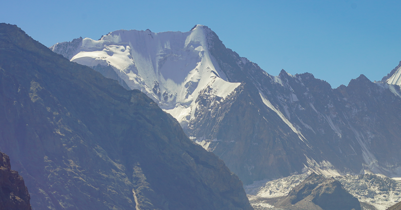 De ‘Kirgizische Frendo-pijler’: een rotstriangel met een lange sneeuwgraat. Foto: Bas Visscher.