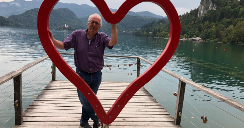 De afdaling in de schaduwrijke bossen boven het water van de rivier de Soca is steil maar de beloning komt met een prachtig laatste stuk langs het water naar Tolmin, dat voor ons het einde is van een aantal etappes op de Juliana Trail. Ons hart klopt wat sneller voor Slovenië en de volgende dag maken we in Bled toch ook maar een foto bij het grote rode hart.