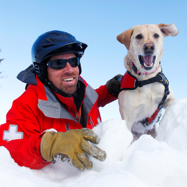 Wie ook altijd zichtbaar lol hebben zijn de lawinehonden waar we mee werken. Hoewel het maar zelden lukt om iemand levend onder de sneeuwmassa vandaan te halen, voor de trouwe viervoeter is een zoekactie één groot feest. De bekendste speurneus is wellicht Sint Bernard Barry die tussen 1800 en 1814 tientallen mensen gered zou hebben. Dat er in het kruikje om de nek rum zou zitten is overigens een fabel, leerde ik ooit van monnik Frédéric Gaillard. "De honden brachten zoete thee om de verdwaalde skiërs energie te geven. Daarnaast warmden de honden de slachtoffers op door tegen ze aan te liggen. Eenmaal op kracht gekomen konden ze dan onder begeleiding van de monniken naar het hospice glijden". Wat mooi, bedenk ik me. Deze dappere honden waren dus eigenlijk de eerste bergredders van Zwitserland. En ik kan beamen, dat werk is niet voor de poes!