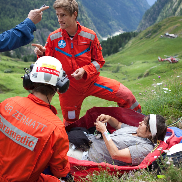 Met glunderende ogen kijk ik vanuit de heli uit over het prachtige landschap van goudgele lariksbossen, witgeplasterde bergtoppen en een helderblauwe hemel. Einfach Herrlich! Echt lang genieten van dit fenomenale herfstspektakel kunnen we echter niet; we zijn op weg naar het Val d'Anniviers voor een reddingsinzet op een boerenalp. "Twee gewonden door aanval van wilde stier" lees ik op mijn tablet. Nadat we ons ervan verzekerd hebben dat de boosdoener veilig vastgebonden is (we dragen immers felrode kleding), verzorgen mijn collega en ik elk een patiënt. Een kwartier later zijn we alweer in de lucht. Ik geef de verpleegkundige van het ziekenhuis in Sion de status door: "Eén keer man, 61 jaar, schaafwonden aan hoofd en gebroken hand. Eén keer vrouw, 45 jaar, borsttrauma met klaplong. Beiden stabiel. Landing in tien minuten."