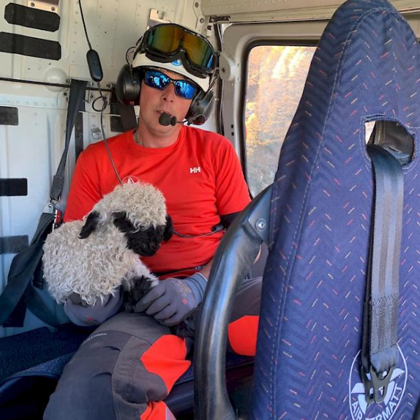 Reddingsactie voor drie verdwaalde Schwarznase-schapen. Foto: Air Zermatt.
