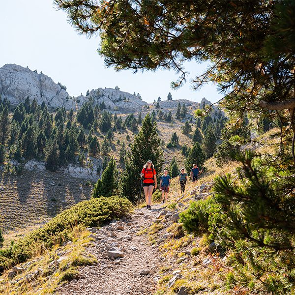 Na een tijdje lopen komen we op een uitgestrekte bergweide met een adembenemend uitzicht op Andorra. Vervolgens volgen we een bergkam naar het hoogste punt van de tocht: La Tosa (2587 meter) . We beginnen trek te krijgen van de klim. Bij Refugi Niu de l’Àliga, een berghut die in de winter als skistation fungeert, genieten we van een welverdiend broodje. Later op de dag wagen we ons aan de beklimming van nog een top, de Penyes Altes. Onderweg cirkelen de gieren boven ons hoofd en passeren we een kort, steil stuk waar we een vast touw gebruiken om af te dalen. We doorkruisen een tweede weide met paarden, koeien en ezels. Het laatste deel van de tocht voert ons door het bos, en uiteindelijk bereiken we berghut El Serrat de les Esposes. Daar ruilen we onze wandelschoenen in voor comfortabele slippers. Helaas begeeft een van Lotte's teenslippers het binnen het uur, maar gelukkig biedt wat sporttape de oplossing!