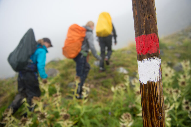 Wie eenmaal het gewicht van een rugzak dagenlang op zijn rug heeft gevoeld, weet hoe fijn het is als die een paar kilo minder weegt. Een spijkerbroek voor ’s avonds? Nee, te zwaar. Liever een lichte, dunne broek. Net zoals de wandelbroek het liefst licht. Een handdoek is te zwaar. Liever zo’n dun, klein soort zeem dat uitstekend vocht opneemt en snel droogt. Dunne, lichte shirts, want katoen wordt nat, droogt niet heel snel en is zwaarder dan veel lichtgewicht spulletjes. Sloffen voor ’s avonds in de hut? Of toch schoenen? Crocs zijn ideaal maar bij de meeste hutten liggen huttensloffen. En hoeveel reservekleding moet er eigenlijk mee? Hooguit één van alles. Want het is fijn om iets droogs aan te trekken als het heeft geregend.
