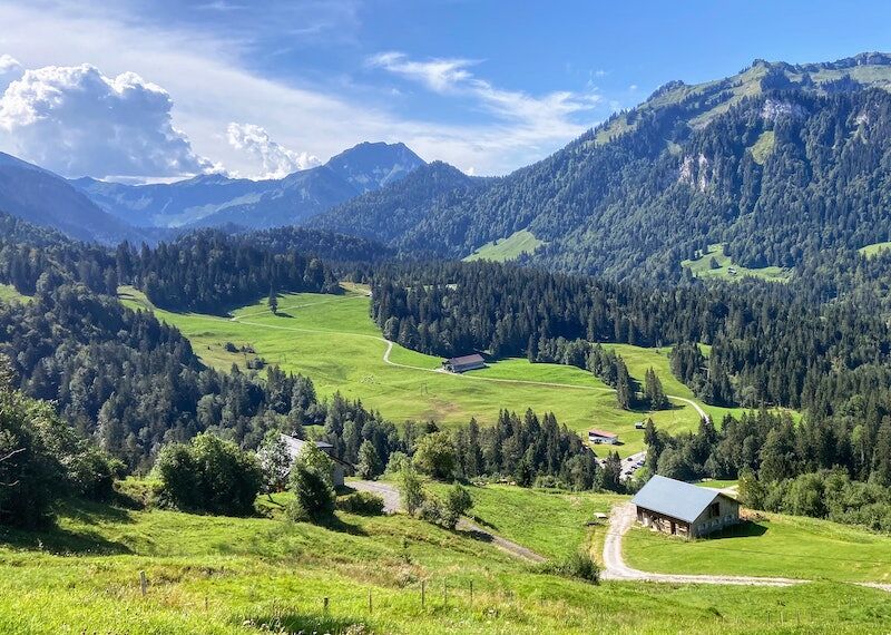 Tot slot de Wiesengänger Route, met veelal vlakke routes door het glooiende landschap in de valleien en dalen van de Allgäuer Alpen.
