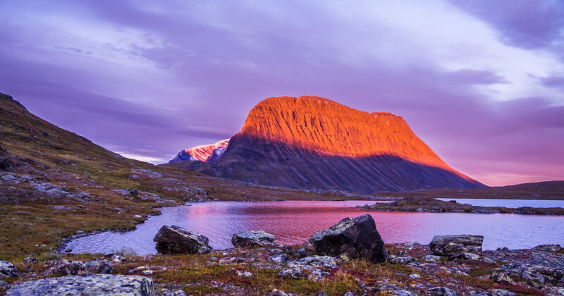 Het Zweedse Lapland kenmerkt zich door een groot, ruim en kaal landschap. Je loopt wellicht de hele dag door hetzelfde dal, maar vervelen doet het nooit. Zo heb je vlakke pieken en uitgestrekte steppen met heide, meertjes en berkenbossen. Zo noordelijk zijn de berken klein en ligt de boomgrens laag. Ga je in de zomer op pad? Dan zijn de dagen zo lang dat je kunt verdwalen in de tijd. Hierdoor wandel je wanneer je maar wilt. Of dat nou ’s ochtends vroeg of laat in de middag is.