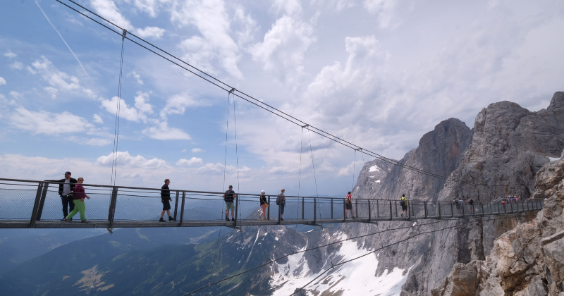 Hangbrug bij de Dachstein gletsjer. (foto: Marie Lollok Klementová)