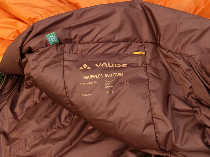 Nadat het dons uit de kleding is gehaald, wordt het gewassen en op hoge temperatuur gesteriliseerd. Door dit proces worden de isolerende eigenschappen van dons weer geregenereerd. Ook hierbij houdt Vaude naar eigen zeggen rekening met de energie die dit kost en dat deze ook van verantwoorde bron is. Voor zover de achtergronden bij de Vaude Marwees 500 DWN. Over naar de slaapzak zelf.