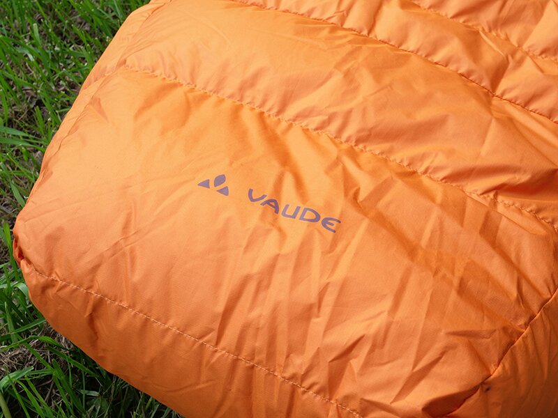 De Vaude Marwees 500 DWN heeft een buitentijk van 50 Denier 300T ripstop polyester. De binnentijk is van hetzelfde materiaal maar is geen ripstop. De slaapzak is aan de binnenzijde van de buitentijk voorzien van een laagje acryl dat voorkomt dat de kleine donsveertjes door de tijk naar buiten ‘kruipen’. Het dons in de slaapzak zit in banen met een H-vorm waardoor binnen- en buitentijk van elkaar gescheiden zijn en je geen last hebt van koudebruggen op de naden. De slaapzak is aan de buitenzijde niet voorzien van een waterafstotende laag (Durable Water Repellant DWR). De vulling is zoals gezegd van gerecycled dons: 500 gram in totaal waarvan 75% eenden dons en 25% eenden veren.