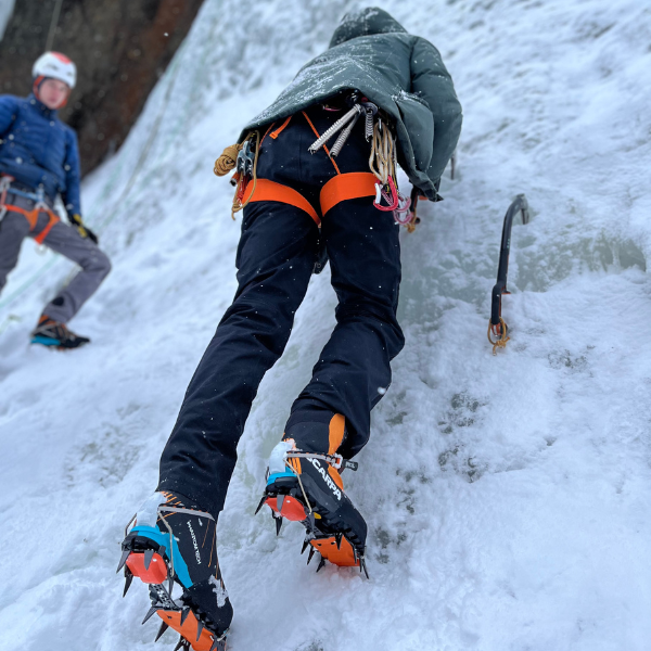Wij hadden tijdens ons ijsklimweekend gelukkig hele goede condities, maar dit is tegenwoordig vaker uitzondering dan regel. Door klimaatverandering is er in de Alpen steeds minder ijs te vinden. Reizen met de trein is een goede optie om toch te kunnen genieten van het ijsklimmen in de Alpen, maar tegelijkertijd je CO2 uitstoot te beperken. Naast het kiezen voor een duurzame manier van reizen kun je ook voor de kleding die je draagt een bewuste keuze maken. De kleding van Rab heeft bijvoorbeeld op alle productlabels een QR-code met een link naar de “Material Facts” van het product. Hierin staat informatie over het materiaal, het land van herkomst en de productie. Daarnaast kun je je kleding een tweede leven geven door het naar een Rab service & repair centre te sturen. Hier kan je gebruikte Rab kledingstuk worden gerepareerd en/of gewassen, en krijg je het herboren terug!