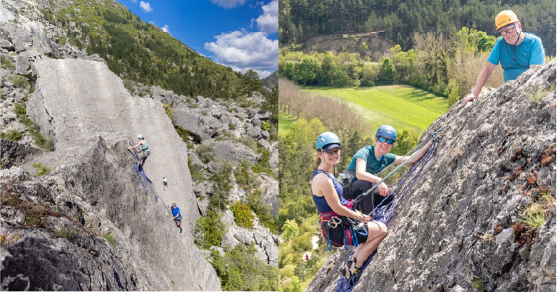 We klimmen pas sinds 2022 in de hal en zien onszelf als recreatieve klimmers. Aanvankelijk leek het ons handig wat touw- en klimtechnieken te kennen voor tijdens het wandelen en toerskiën. Maar nadat we het topropecertificaat haalden en besmet raakten met het klimvirus, ging het buiten klimmen ook wel trekken. We zijn graag buiten actief – wandelen, fietsen en kitesurfen– en buiten klimmen lijk ons een gave afwisseling van alle andere activiteiten. Om buiten te kunnen klimmen heb je nu eenmaal een cursus single pitch nodig. De zesdaagse cursus van Bergsportreizen in de Vallee du Buëch biedt een mooie bestemming in een prettig klimaat en genoeg tijd om de vaardigheden aan te leren.