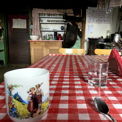 Onze dromen worden waarheid als we iets later in de Präau Hochalm aankomen: warme chocomelk van verse melk. De Präau Hochalm is een 150 jaar oude hut waar nog steeds elke zomer kaas, yoghurt en boter wordt gemaakt. Terwijl wij onze warme choco drinken is de huttenwaardin druk bezig met het maken van kaas. We mogen we even over haar schouder meekijken en ze vertelt ons over het reilen en zeilen van de alm. We voelen ons ontzettend welkom. De rest van de dag teren we op deze ervaring want veel tijd voor pauze nemen we niet. Het blijft regenen en waaien dus we stappen flink door naar ons doel van de dag: de Biberalm.