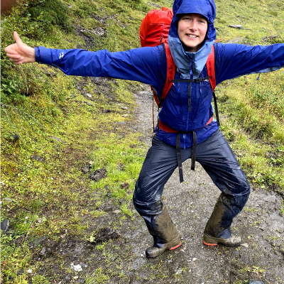 Met droge schoenen en veel zin om weer een avontuur te beleven stappen we de volgende ochtend alweer de regen in. Het pad gaat direct steil omhoog dus we kunnen meteen warmlopen. Waar we gister genoten van het modderbad van de koeien op de wandelpaden, komen we ze deze ochtend in levende lijve tegen. Met grote getalen, op het smalle pad, moeder met kalf. Hoewel ik over het algemeen niet heel bang ben voor koeien ben ik na het lezen van de ‘hoe om te gaan met weidevieh’ regels in het Gasteintrailboekje wel op mijn hoede. ‘Wenn Weidevieh den Weg versperrt, mit möglichst grossen Abstand umgehen!’ staat er. Makkelijker gezegd dan gedaan op deze steile alm. Aangezien wij te gast zijn tarten we het lot niet en weten we ons een weg te vinden over de helling via koeienpaadjes terwijl de koeien rustig verder herkauwen op het wandelpad.