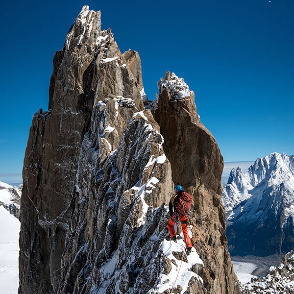 De Peuterey Integrale (skyline van links naar rechts) op de Mont Blanc was een route die voor mij mogelijk werd door het opbouwen van fitheid en klimskills. Dit is een van langste, moeilijkste en mooiste graten van de Alpen - een echte conditie testpiece dus. Je start in Courmayeur op 1500m, bent drie dagen onderweg in technisch uitdagend terrein en eindigt op de top van de Mont Blanc (4810m).