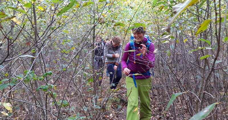 In de meeste natuurgebieden moet je juist op de paden blijven. Anders verstoor je de dieren of maak je de natuur kapot. Maar op sommige plekken mag dat juist wel, vrij struinen. Juist doordat het zo bijzonder is in Nederland, maakt dat het extra avontuurlijk. Zelf doe ik liefst een lange broek en stevige schoenen aan. Want het kan zijn dat je door hoge begroeiing moet waden. In je speurtocht naar mooie plekken en routes sta je soms oog in oog met een (groot) beest. Ga daar dan natuurlijk wel met een bocht omheen.