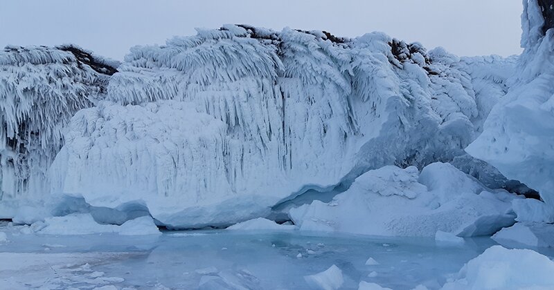 Het idee ontstond in de afgelopen lente toen mijn expeditiepartner Gerard Murre terugkeerde van een vijfdaagse schaatstocht op het Baikalmeer en me zijn foto's liet zien. Er waren enkele buitengewone afbeeldingen van ijsgrotten, drukruggen, lange druipsteenachtige ijspegels en vreemde ijsformaties, om nog maar te zwijgen van de ongerepte kleuren van het ijs in een breed scala aan tinten wit en blauw.
