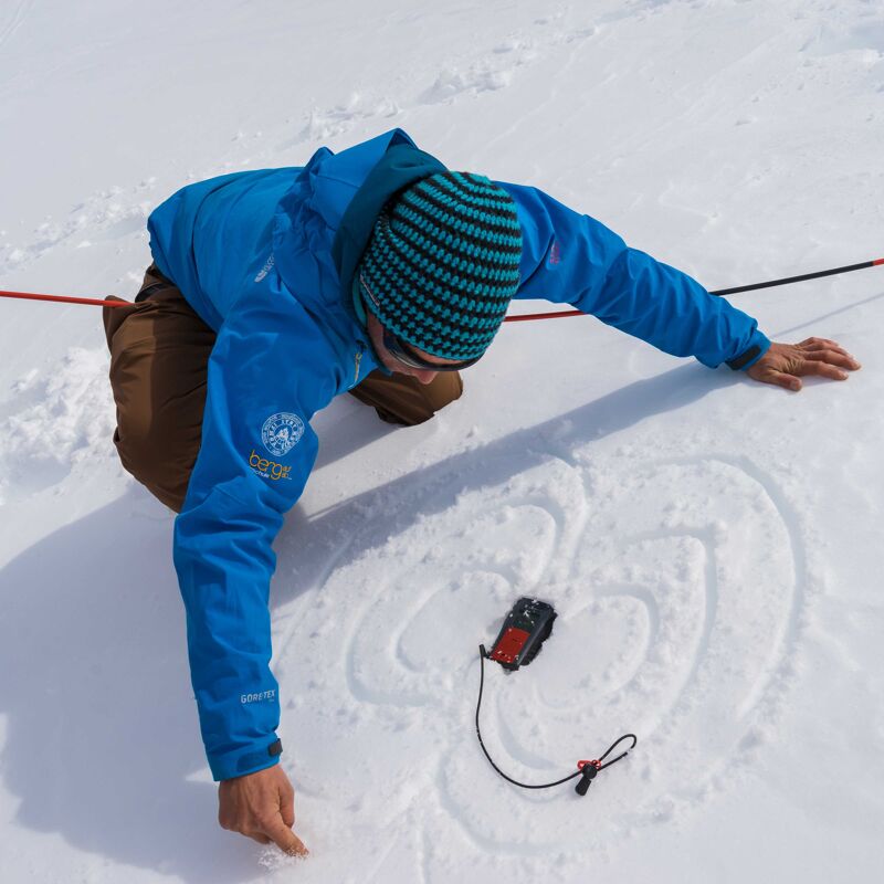 De volgende dag besteed je op de piste. Via een korte afdaling kom je bij een cabinelift die je in het hart van het gebied brengt. In de ochtend doe je oefeningen die vooral bestemd zijn voor het leren van de verticale beweging. In de middag is er tijd voor lawineoefeningen: zoeken met piepers, oefenen met een sonde en graven. “De boodschap van de oefening is hetzelfde: op papier is het allemaal veel makkelijker dan in de praktijk”, leert Ernst.