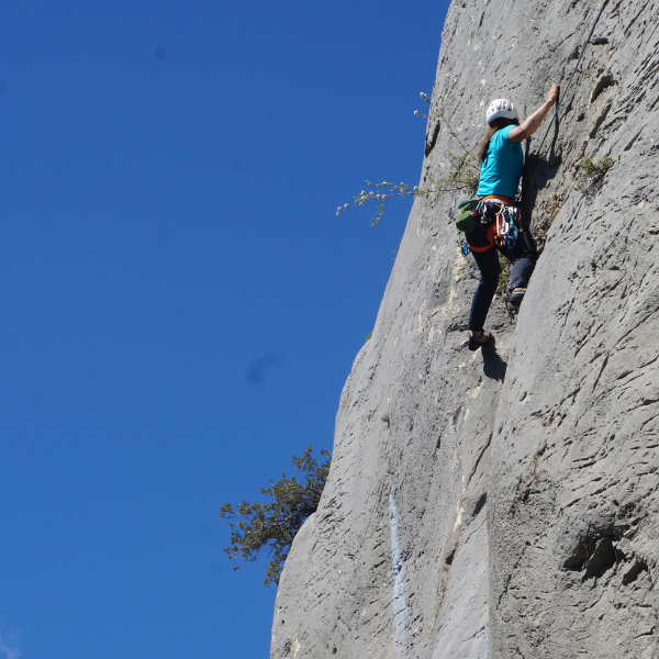 Een paar dagen later brandt de felle Zuid-Franse lentezon in onze bleke nekken. Maël: "Voorzichtig verplaats ik mijn voet naar een minuscule trede. Twintig meter onder me schreeuwt coach Niek iets naar me, daaronder is vierhonderd meter lucht tot aan de bodem van de kloof. Het uitzicht is betoverend, de rots vlijmscherp en de teleurstelling verleden tijd".