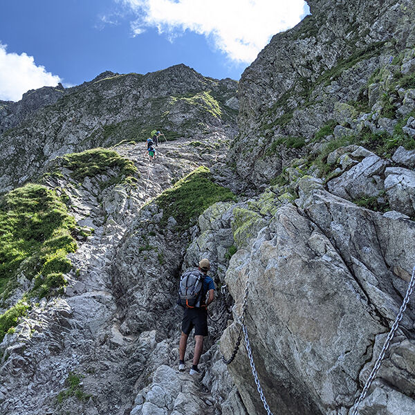 We worden uitgerust wakker en kijken nieuwsgierig uit het raam. Vannacht heeft het flink gespookt en werden we wakker van een paar harde knallen. Gelukkig, strakblauwe lucht. Na het ontbijt ontmoeten we onze berggids Maciek. Hij zal ons de komende dagen begeleiden op de wat lastigere stukken van de tocht. Vanaf de hut lopen we regelrecht de bergen in. Vanaf dit punt is het moeilijk voor te stellen dat er een pad loopt. We stijgen richting de bekende Zawrat pas. De trail maakt plaats voor rots en we klimmen en klauteren ons een weg naar boven. Op een groot deel van de route zijn er stalen kettingen. Deze zekering is kenmerkend voor de Hoge Tatra’s en je vindt ze op de stukken waar je meer moet klimmen dan wandelen. Ze bieden goed houvast maar het is geen klettersteig. De kettingen maken de weg naar boven makkelijker en na twee uur klimmen bereiken we de Zawrat pas. We worden beloond met een uitzicht over de vijf meertjes en diepgroene bergflanken. De gids vertelt ons dat de scouts van Ring of the Lord, of bedoelde hij Lord of the Rings, in deze omgeving opnames wilden maken maar dat de keus helaas op Nieuw-Zeeland viel. Helemaal niet jammer denken we, anders was het hier vast te druk geweest! We genieten van de omgeving en dalen af naar de Five lake Shelter die aan een van de meertjes ligt. Doordat het een nationaal park is en de natuur beschermd, kunnen we geen duik nemen maar onze voeten vinden de verkoeling heerlijk. Tevreden sluiten we de dag af met een typisch Poolse maaltijd, schnitzel.