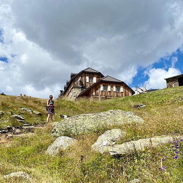 Zigzaggend lopen we omhoog en we houden het kletsen voor gezien. Ik voel dat mijn gezicht het effect ‘zontomaat’ krijgt en stop af en toe om op adem te komen maar ook om van het uitzicht te genieten. We lopen hier in het natuurpark Stelvio en het gebergte is zoveel anders dan mijn zo geliefde Dolomieten. De steile hellingen lijken meerdere kleuren te hebben, schakerend van groen, naar rood en bruin. De hellingen staan bovendien vol met rododendron. Hoe mooi moet dat wel niet zijn als ze begin juli in bloei staan en ik neem mij voor dan een keer terug te keren. Het gefluit van een marmot haalt mij uit mijn gedachten en ik tuur tussen de grote rotsblokken. Ineens zie ik hem fier overeind staan gefixeerd op Lykke die als indringer wordt beschouwd. Zij heeft echter geen jachtinstinct en haar ontgaat de drukte van de marmot.
