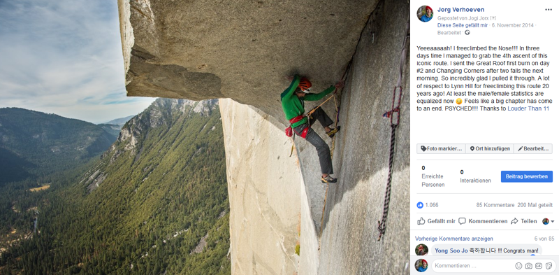 Eigenlijk begon het thema Yosemite voor mij al veel eerder. Als jeugdige klimmer kwam ik in de klimhal een poster van Alexander Huber tegen van zijn beklimming van El Nino, een route op El Capitan. De wand scheen spiegelglad, oneindig hoog, en ik kon me niet voorstellen waar hij zich überhaupt aan vast hield. Toen vroeg ik me al af of ik daar ooit een keer zal hangen. Dat bleek nog een tijdje te duren, maar wel het geval te zijn.