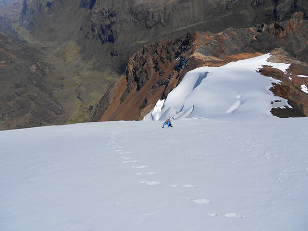 Terug in Huaraz horen we van een alternatieve route op de Huantsan en na een verkenningstocht blijkt deze in goede conditie te liggen. Het klimtechnische deel van deze route vergt minimaal vier dagen stabiel weer. Aldus de weersvoorspelling zit dat er niet meer in. Sterker, er wordt wederom veel sneeuwval verwacht. We besluiten daarom de Ranrapalca (6162 m) te beklimmen welke minder tijd vergt. Helaas slagen we er niet in om de top te bereiken, na twee pogingen moeten we door o.a. het slechte weer afdalen.