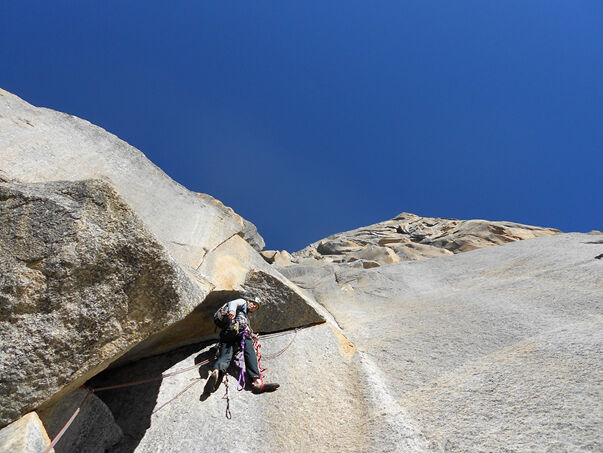 We besluiten La Esfinge te beklimmen over de klassieke lijn geopend in 1985. La Esfinge is een bigwall van van ca. 750 m (6A, A1) die uittopt op 5325 m. Aangezien de Peruaanse dag maar 12 uur daglicht telt en we geen zin hebben in een lang en zeer koud bivak, zetten we alles op alles om deze wand in één dag te beklimmen. Eerst verkennen we de wand en laten kleding, water en eten achter op de top van pitch 6 waarna we abseilen. Dankzij deze strategie weten we de route de volgende dag binnen 10 uur te beklimmen. Deze steile wand met bomvast graniet blijkt een echte hoofdprijs te zijn!