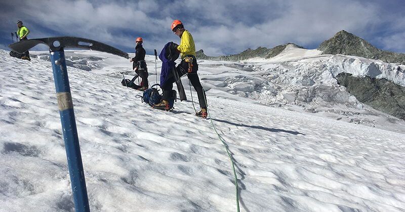 Het liefste geef ik cursussen “sneeuw en ijs” en die hebben min of meer een vast stramien. ’s Avonds na het eten wordt het plan voor de volgende dag doorgenomen en bepaald welke twee cursisten de volgende dag de dag-leiders worden. Die kunnen dan de rest van de avond de tocht voorbereiden. Met me doornemen, vragen stellen en zo. De volgende ochtend vroeg op, ontbijten, checken of iedereen alles bij zich heeft, de touwdragers benoemen en gaan. Dan zijn we de hele dag bezig. Afhankelijk van wat we doen, komen we dan om een uur of 3 of 4 weer terug op de hut. Als het nodig is, kunnen we dan nog touwtechnieken oefenen. Of de cursisten kunnen gaan luieren of rondstruinen. Verder komen aan het einde van de middag of ’s avonds nog wat technische zaken aan bod zoals kaart & kompas en weerkunde. Het liefste een beetje vroeg in de week zodat we de rest van de week onderweg kunnen oefenen. Vroeg naar bed gaan zit er met tieners zelden in: ’s avonds worden er tot de Hüttenruhe eindeloos spelletjes gedaan.
