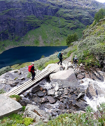 Ik ben een enorme Noorwegen-fanaat. Dus voor Bergsportreizen begeleid ik het allerliefst tochten in Noorwegen en dan bij voorkeur in West-Noorwegen, het fjordengebied. Vorig jaar en dit jaar begeleid ik een huttentocht door het imposante Aurlandsdal in West-Noorwegen.