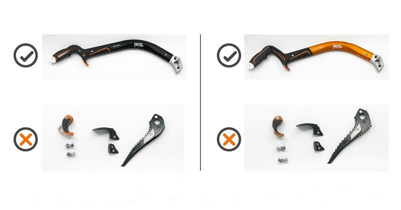 Let op! Petzl is een terugroepactie gestart voor de Nomic en Ergonomic ijsbijlen vanwege een risico op defecten aan het handvat, waardoor de klimmer zou kunnen vallen. Stop onmiddellijk met het gebruik van ijsbijlen die onder deze terugroepactie vallen en neem contact op met de Petzl klantenservice voor een vervangende steel.