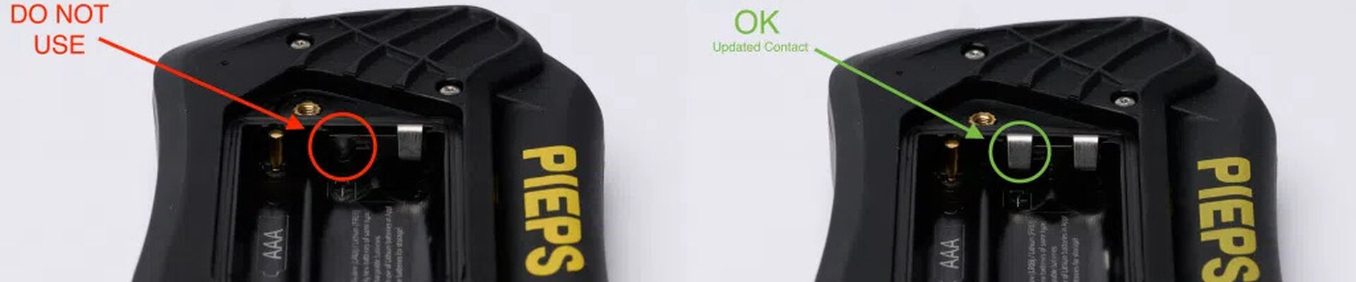 In november 2024 werd één gemeld geval in Noord-Amerika waarbij een PIEPS PRO IPS lawinepieper niet aanging. Uit onderzoek is gebleken dat dit te wijten was aan een mogelijk verlies van contact in het batterijcompartiment bij gebruik met AAA (LR03)-batterijen die aan de onderkant van de toegestane afmeting-tolerantie zitten. In een dergelijk geval kan de lawinepieper mogelijk niet worden ingeschakeld, of als dit wel het geval is, kan het per ongeluk worden uitgeschakeld als er tegen wordt gestoten.