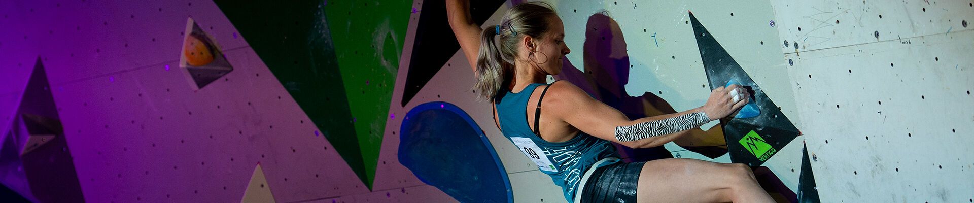 Vera Zijlstra tijdens het NK Boulder 2018 (Foto: Zout Fotografie)