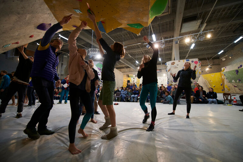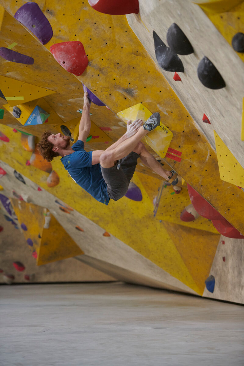 De tweede boulder voor de heren bestaat uit allemaal zwarte bollen van verschillend formaat. Dit soort knijpers en slopers is niet eenvoudig om vast te houden. Het is leuk om te zien dat de klimmers allemaal verschillende manieren proberen en vinden om verder te komen. Uiteindelijk weten Tim, Mark, Don en Elko de boulder te toppen.