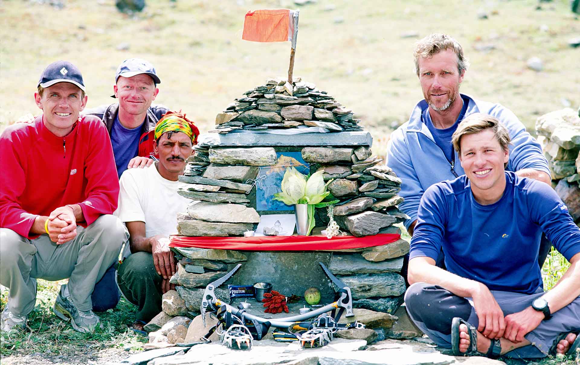Drie haulbags en een rugzak zijn bedolven. Vrijwel al het materiaal voor de beklimming, waaronder twee ijsbijlen, een portaledge, friends, haken, ijsschroeven, voor tien dagen eten, een brander, gas, touwen en mijn klimjack… Wat nu? Gelukkig hebben we nog voedsel en materiaal in een lager depot op de gletsjer. Van een engels team dat net in het basiskamp is aangekomen lenen we haken en een jack. We kunnen met één portaledge en één biblertentje de wand in. Alle vier geloven we nog steeds in de beklimming.