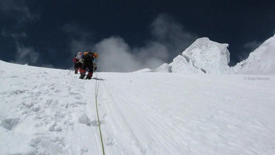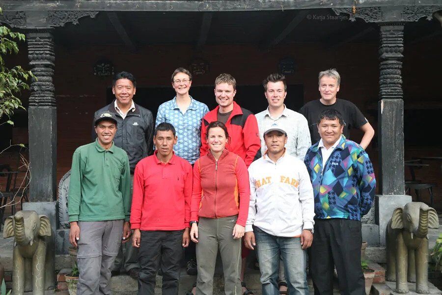Henk Wesselius, Niels van Veen, Miriam Knepper, Lakpa Nuru Sherpa, Nuru Gyalzen Sherpa en Katja Staartjes (tevens expeditieleider), ondersteund door basiskamp-manager en fotograaf Menno Boermans