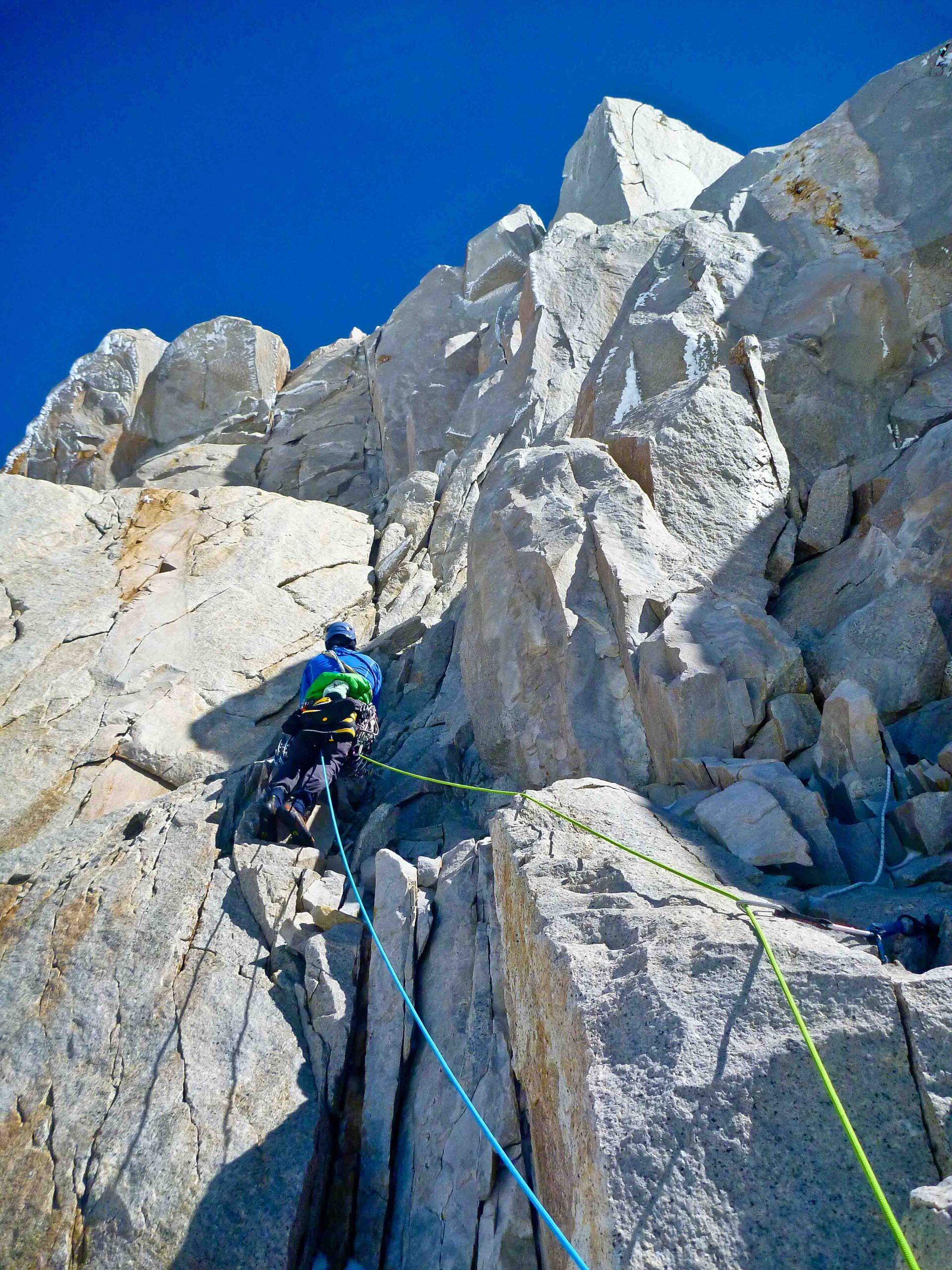 Na een aardige weersvoorspelling waarin de wind twee dagen zou moeten gaan liggen, gingen Niek en Jefta op pad. Eerst omhoog naar de Paso Superior op 1950 meter hoogte, een beklimmin gop zichzelf. Er stond ondanks de voorspelling nog harde wind en de sneeuw was afgezien van een te dunne harde toplaag ongebonden. Niek en Jefta besluiten te bivakkeren op de Paso Superior om ‘s nachts om twee uur, als de sneeuw wat meer is aangevroren, verder te gaan via de Brechos de Italianos naar de Silla-pas. Daar zien ze dat de condities op de wand niet optimaal zijn, en besluiten ze voor de ‘makkelijke’ Franco-Argentina-route te gaan.