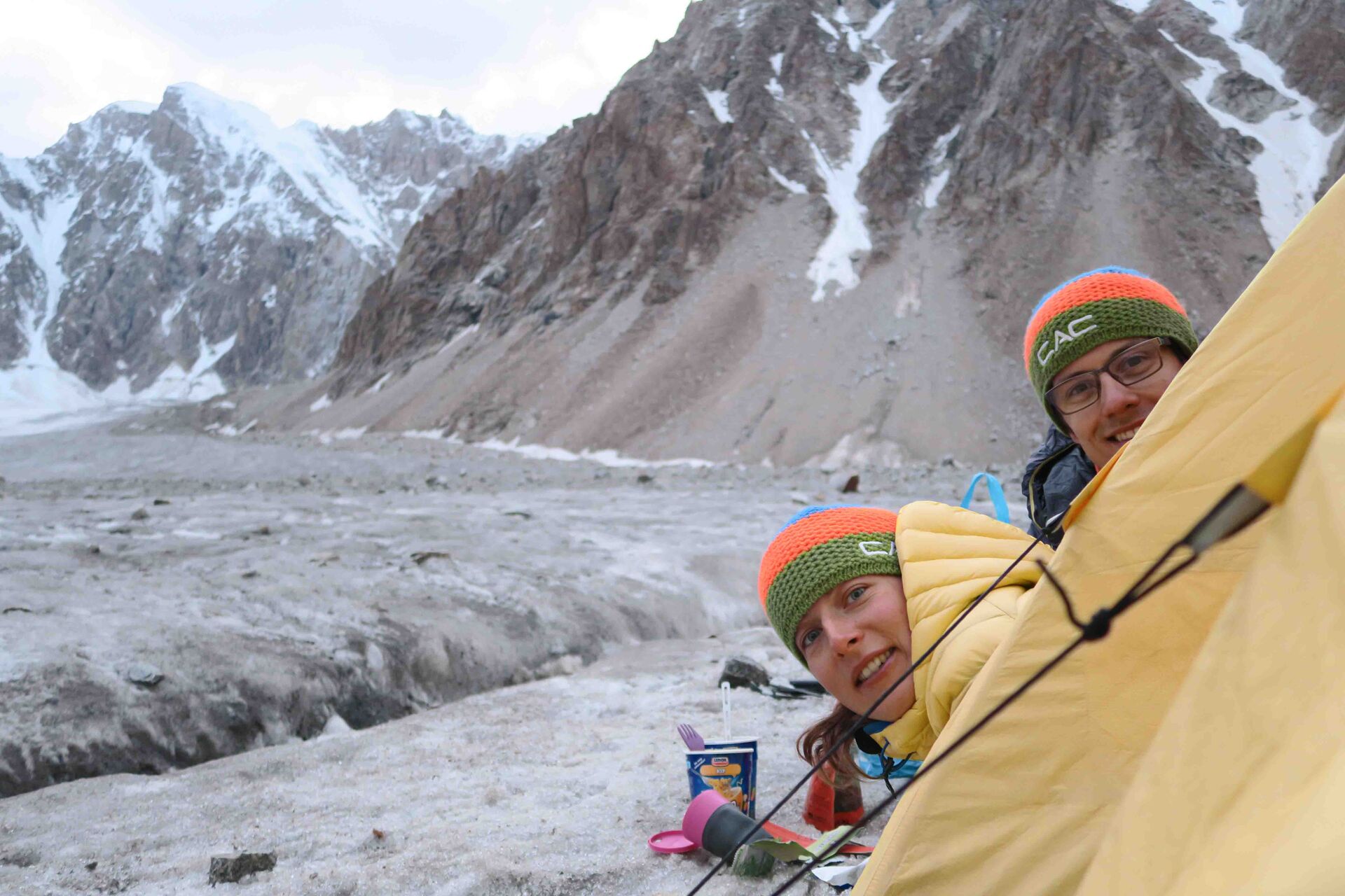 Regien en Vincent in het vooruitgeschoven basiskamp.