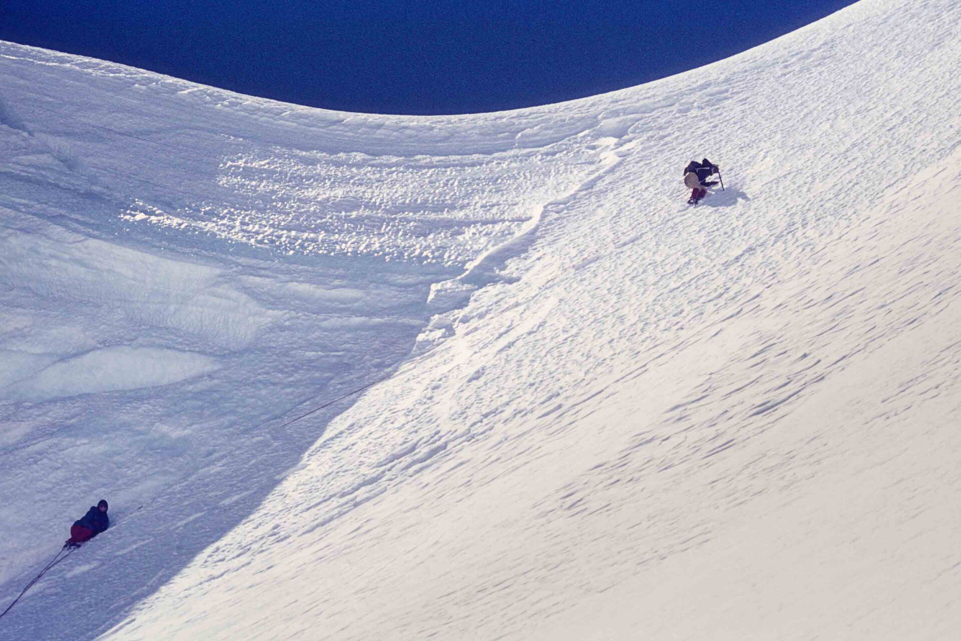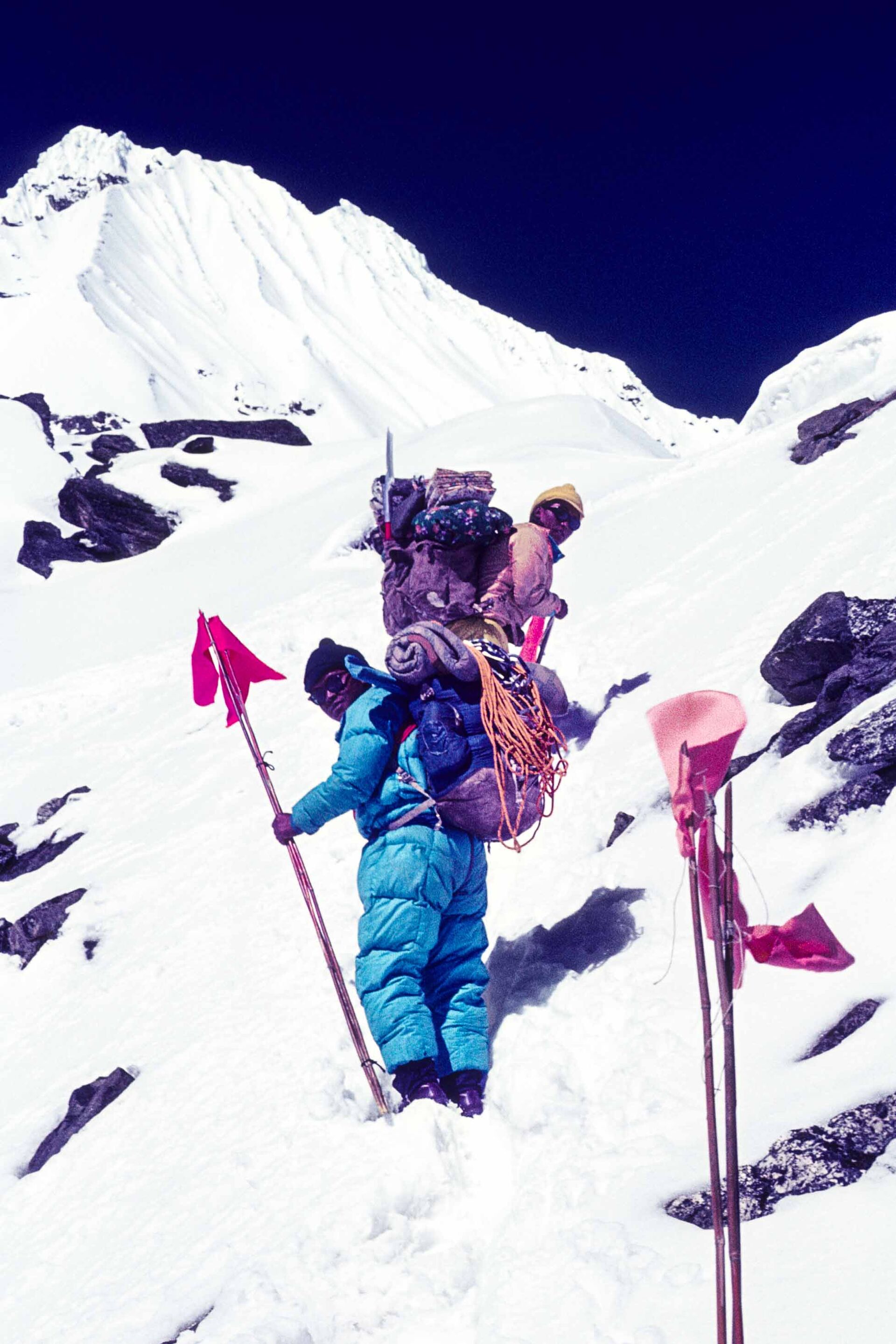 Later in de expeditie beklommen Margreet Hogeweg, Xander Verrijn-Stuart, Robert Eckhardt en Frans Visser samen met de Nepalese Ang Tjoendi Sherpa de berg Parchamo, een gemakkelijke sneeuwtop van 6279m op weg over de Tashi Labcha-pas naar Thami.