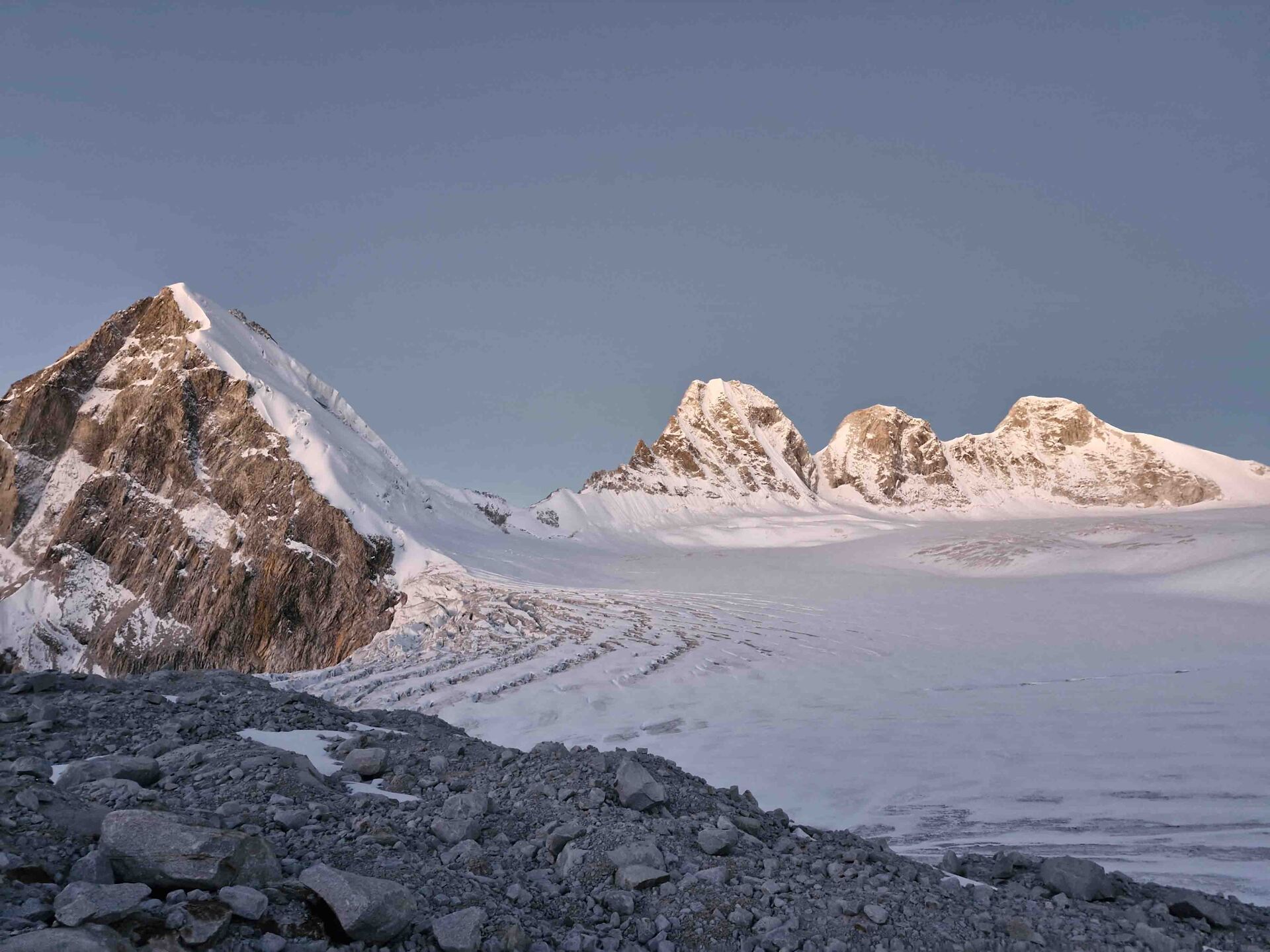 Enkele dagen later hebben Alexander en Bas (met gerepareerde tent) de noordwand van P. 6119 beklommen. De wand was uitdagend gezien de poedersneeuw en het gebrek aan ijs, wat betekende dat goede zekermogelijkheden zeldzaam waren. Hoewel het windstil was, was het erg koud. Rond 14.00 uur stonden Alexander en Bas op de top, waarna ze de wand hebben afgedaald met een combinatie van abseilen en afklimmen. Tegen zonsondergang stond het team weer op de gletsjer. De route hebben ze “frostbound” (D+) genoemd, wat refereert aan de gevolgen van de beklimming…