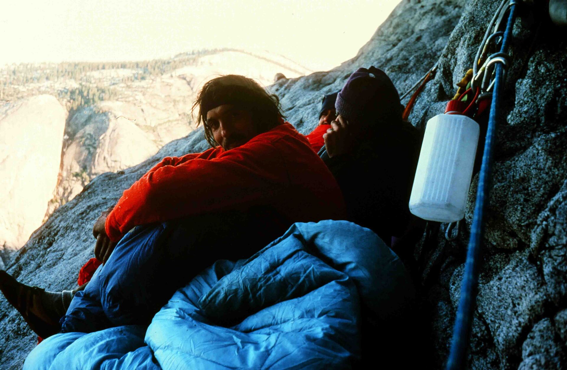 ‘We waren echt volledig slecht voorbereid. We hadden geen haulbags, wisten niets van de touwtechnieken en hadden veel te weinig water. We waren zo stom om op de eerste dag veel water naar beneden te gooien omdat we dachten dat we het niet nodig hadden. Ik klom alles voor. We hadden 3 of 4 dagen nodig om de top te bereiken en het was een fantastische ervaring. Het was ook direct de eerste route die ik deed toen in aankwam in Yosemite. Later in die trip deed ik de noordwestwand op de Half Dome en de Steck-Salathe op de Sentinel.
