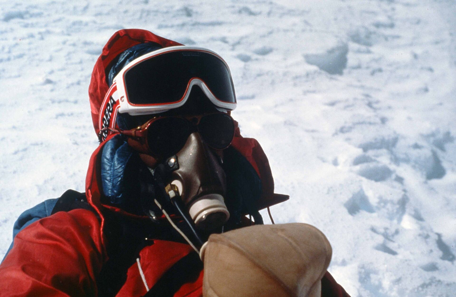 “Herman, ik hoor of versta je alleen als ik de squelch-knop indruk, daarom zal ik kort zeggen wat we gedaan hebben. We hebben de Zuidtop van de Everest bereikt, en het zadel tussen de Hoofdtop en de Zuidtop. Toen we op dat zadel waren stortte het gedeeltelijk in en toen zijn we gauw teruggegaan omdat de tijd over was.”