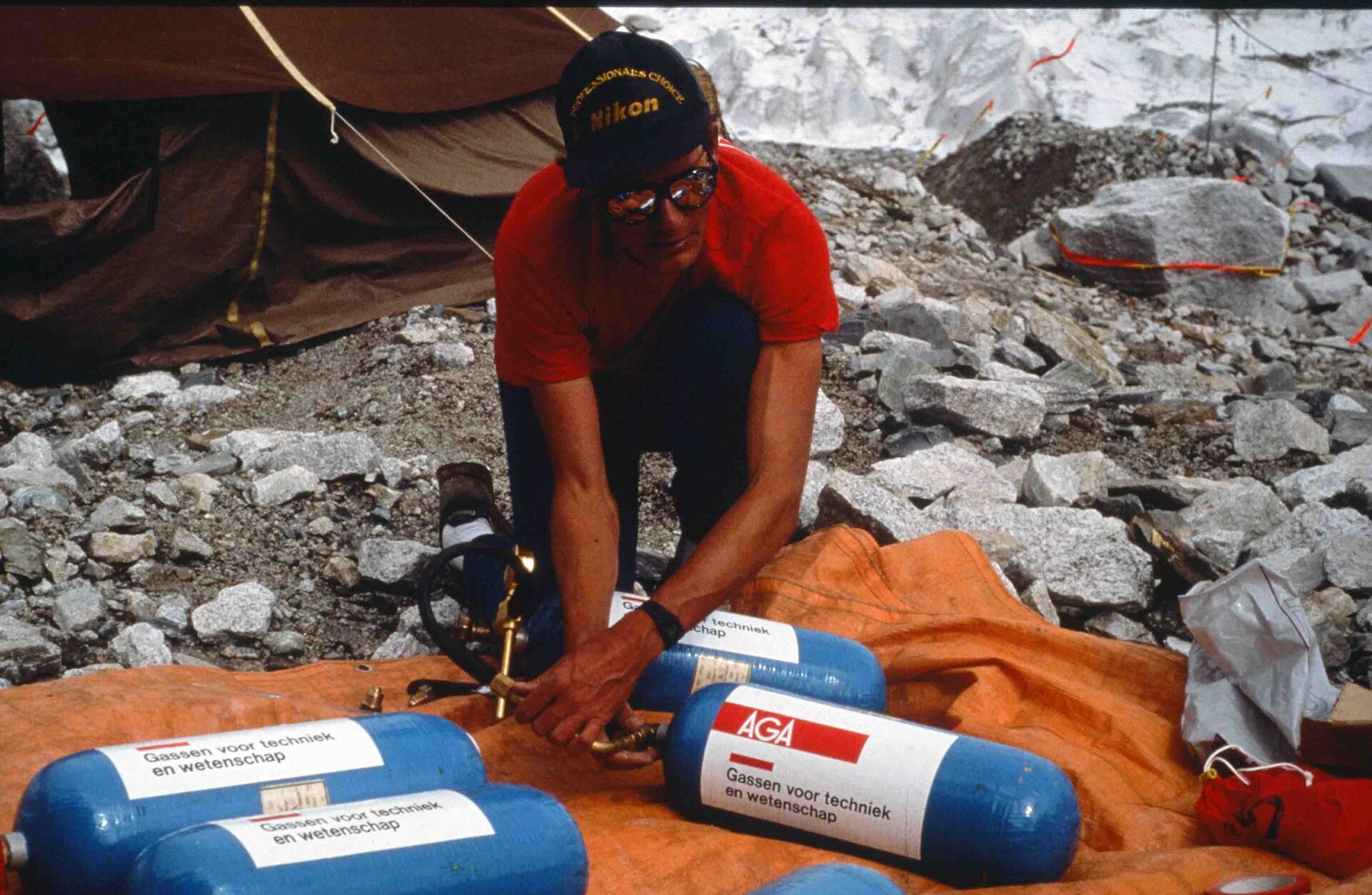 “Ik ben met Mariska (Mourik) tot onder de Zuidtop geweest, 200 meter. Met Ganesh op de Zuidtop en daar hebben we gestaan en foto’s gemaakt en daar onder andere de microfilm begraven. En ik ben zelf alleen doorgegaan naar de Hoofdtop. Ganesh heeft me nagekeken tot ik zover was en is toen weer omgedraaid en is voor mij uit teruggegaan. Ik heb wel degelijk de Hoofdtop ook beklommen, over.“
