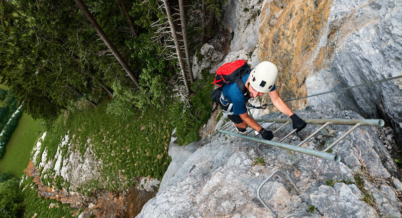 Klettersteigen is populair. Waar het vroeger een onderdeel was een alpiene wandeling of klim, is de klettersteig tegenwoordig het doel op zich. Op fun-klettersteige onderin het dal zijn de risico’s geringer dan bij een alpiene klettersteig. Let daarom goed op hoe moeilijk jouw klettersteig is en zorg dat je goed geïnformeerd bent over de vereisten er van.