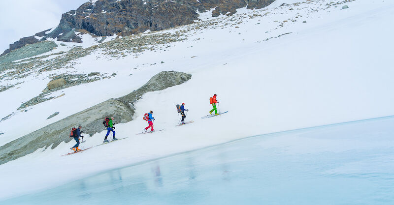 Het belangrijkste en ook het moeilijkste is om als groep open te blijven praten. Als die ene tocht er niet inzit, terwijl dat toch het echte doel was, dan is het voor sommigen moeilijk om dat te accepteren. Terwijl een ander misschien wel opgelucht is. Binnen een groep heb je altijd verschillende karakters en ook altijd verschillen qua conditie. Maak je de keuzes op gevoel, op je emotie of op basis van de gegevens? Probeer dat te benutten en door te vragen bij elkaar wat iemand echt vindt. Je hoeft geen ellenlange praatsessies te houden, maar zorg dat iedereen durft te zeggen wat hij/zij denkt of voelt. Het is daartoe handig als iedereen in de groep over minimaal elementaire basiskennis over alpien terrein en lawinecondities heeft. Anders ga je blind achter iemand aan, omdat je het zelf echt niet weet.