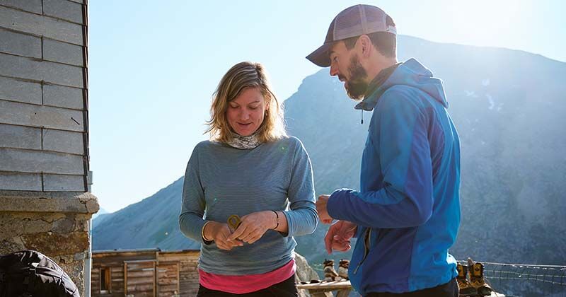 Afhankelijk van waar en wanneer je gaat bergwandelen, zul je twee tot vier laagjes kleding aantrekken. Tijdens lekker warmere dagen in de bergen kun je vaak toe met een onderlaag en een softshell die dienst doet als tussenlaag en buitenlaag. Is er neerslag voorspeld, dan ben je aangewezen op het traditionele drielagensysteem. Tijdens de koudere maanden kun je deze uitbreiden met een jas van dons of synthetisch dons. Op hoogte kan een dunne donsjas ook in de zomer handig zijn. Twee, drie of vier lagen: het belangrijkste is dat je jezelf onderweg regelmatig afvraagt of je nog comfortabel bent en je laagjes kunt aanpassen aan de situatie.