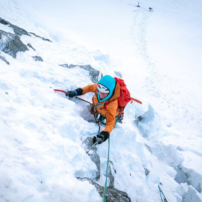 Line van den Berg bedwingt de breukzone tussen sneeuw en rots. Foto, Bas Visscher.